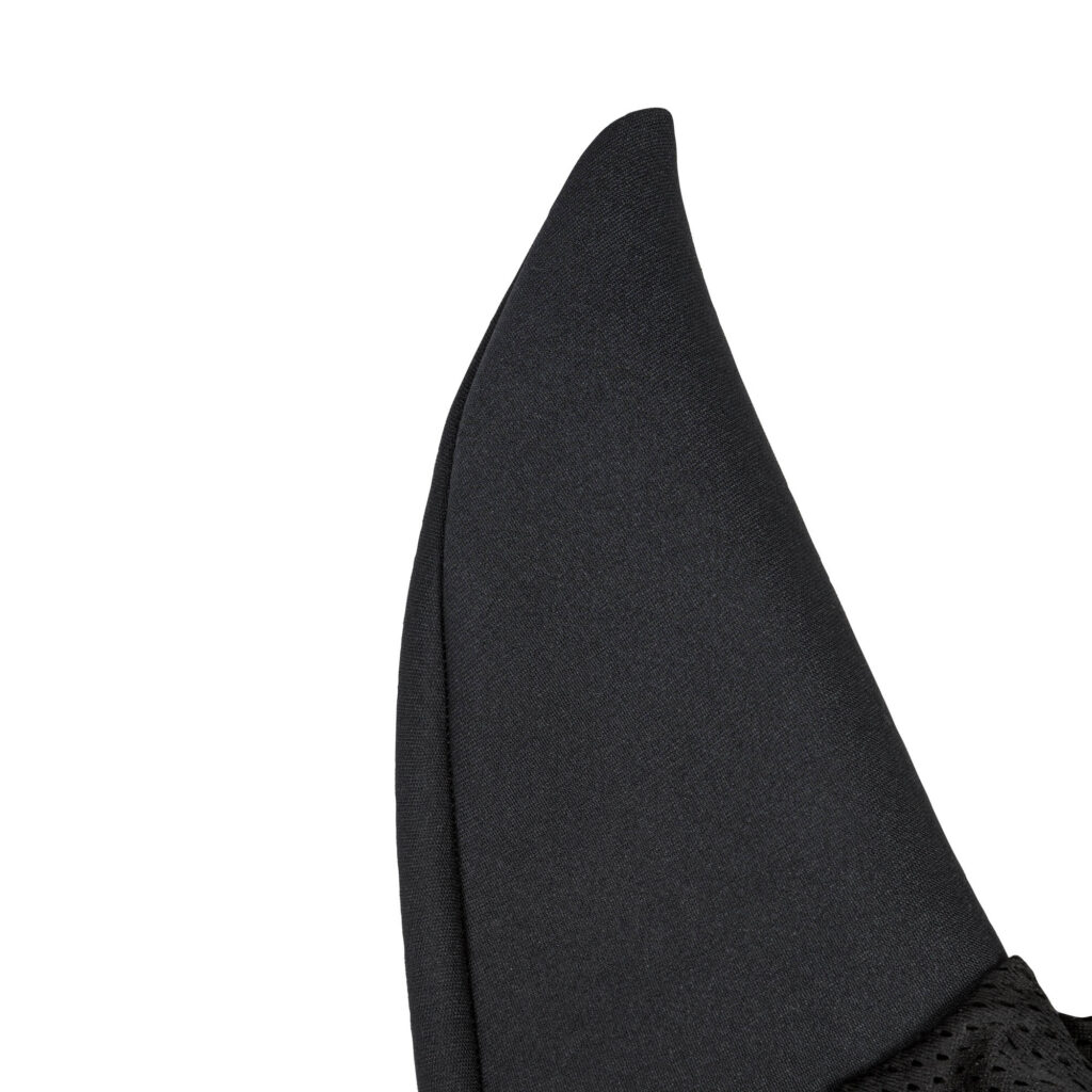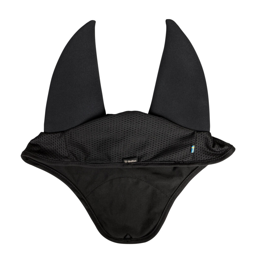 Die Ohren werden von einem dehnbaren, elastischen Material bedeckt, das mit einem Futter versehen ist, welches Geräusche abdämpft. Die Innenseite ist mit Welltex gefüttert, um eine gute Blutzirkulation im Kopfund Nackenbereich zu fördern. Die wohltuende Wirkung kann dazu beitragen, Muskelverspannungen zu lösen, was dem Wohlbefinden und dem Komfort des Pferdes zugute kommt.